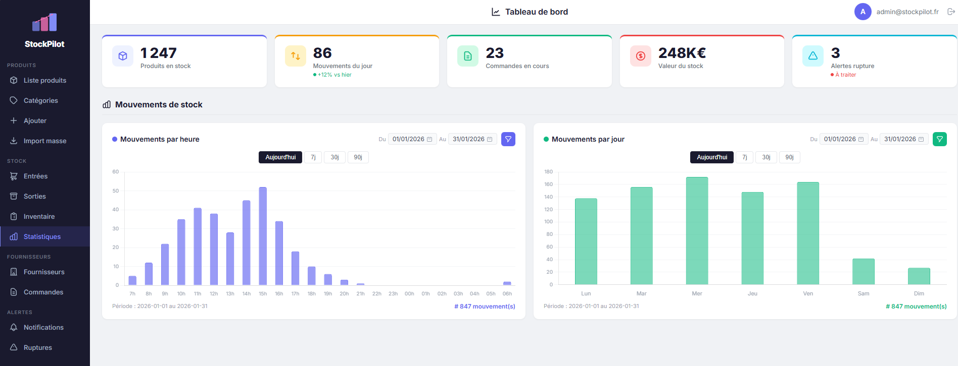 Suivi de flotte GPS, gestion de stock multi-dépôts, preuve de livraison, optimisation de tournées.